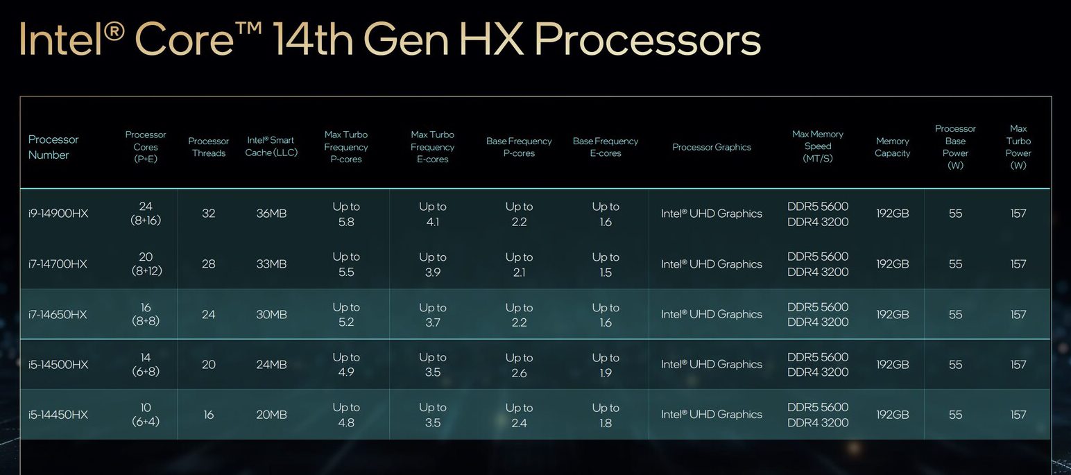 Ogólnie rzecz biorąc, im większa moc, tym szybszy procesor, ale istnieją procesory H i HX z mniejszą liczbą rdzeni niż inne, więc wydajność będzie zależała od zadań, które im rzucasz, w równym stopniu, jak od samych procesorów.
